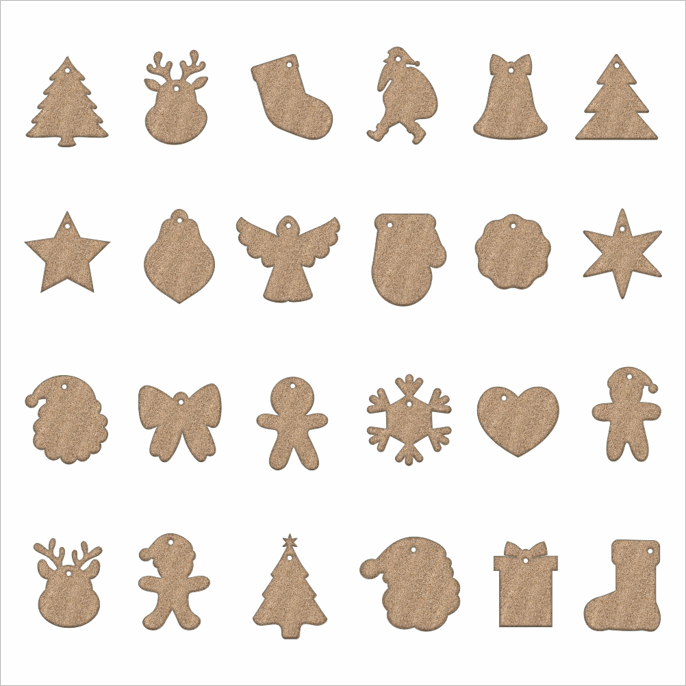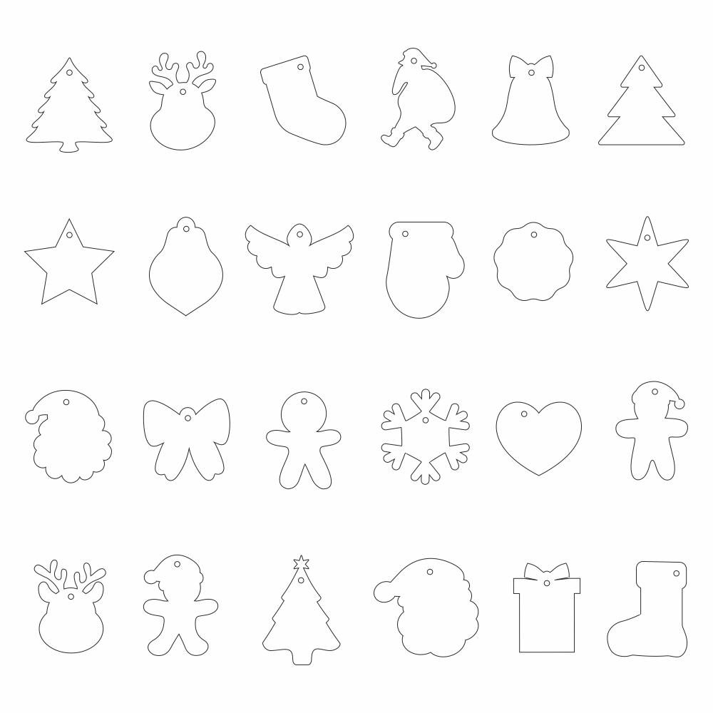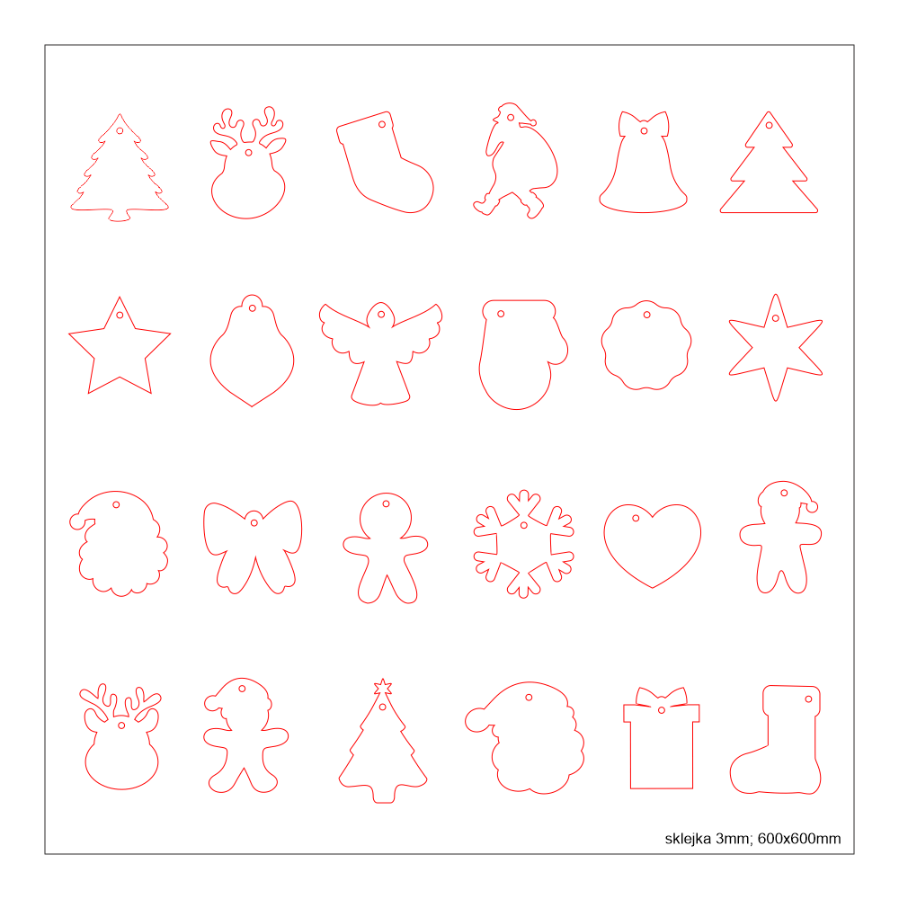 Gotowy plik- szablon do wycięcia – zawieszki świąteczne 24 sztuki