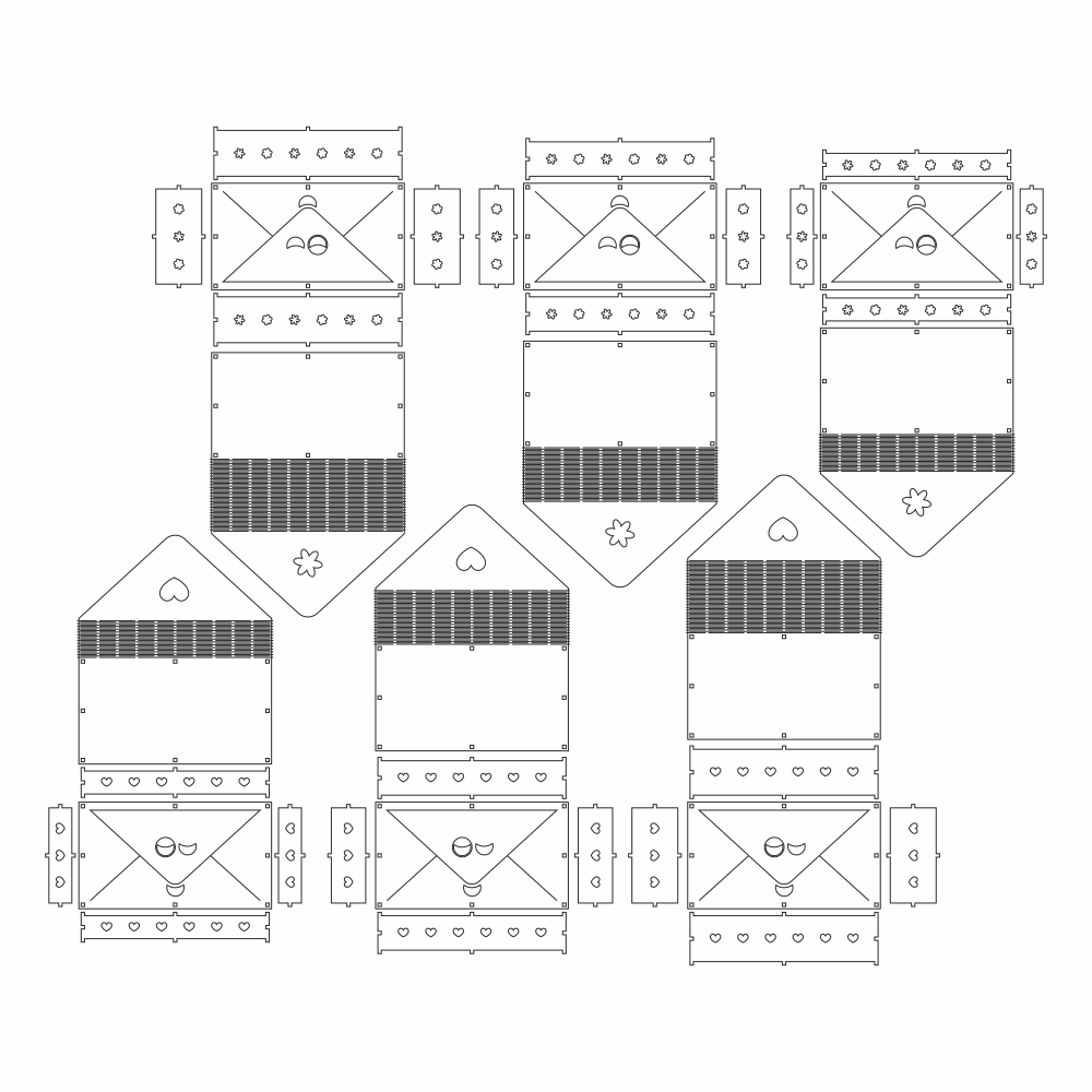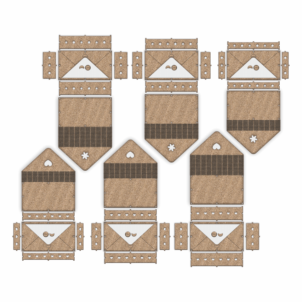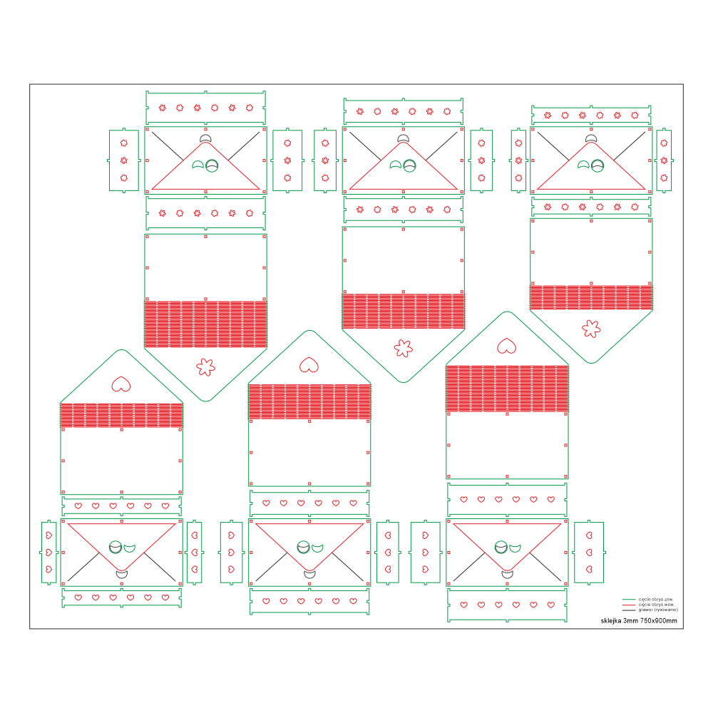 Walentynki pudełka prezentowe 6szt koperta różne wysokości – gotowy plik- szablon do wycięcia laserem